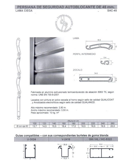 -Las persianas Autoblocantes son persianas enrollables con lamas de aluminio extrusionado. El diseño de sus lamas permite un autobloqueo de las mismas, impidiendo que se pueda subir la persiana forzándola desde el exterior.