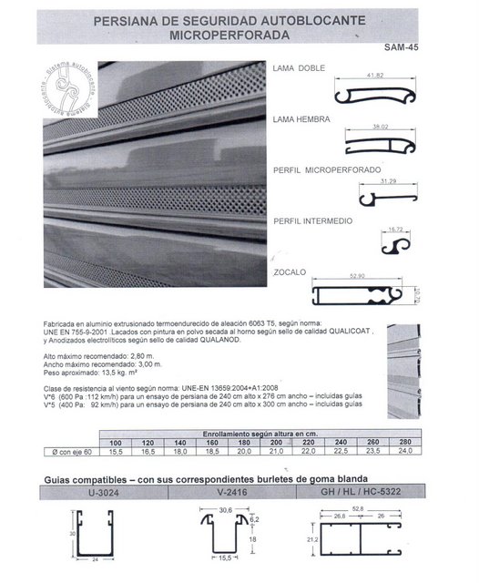 -Las persianas Autoblocantes son persianas enrollables con lamas de aluminio extrusionado. El diseño de sus lamas permite un autobloqueo de las mismas, impidiendo que se pueda subir la persiana forzándola desde el exterior.